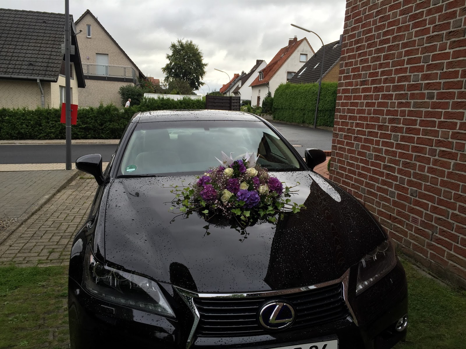 お花で装飾された車で花嫁、花婿がそれぞれ市役所に向かいます。