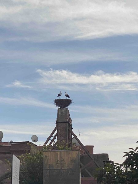 マラケシュ名物のコウノトリも仲良く夫婦でのんびりしている。