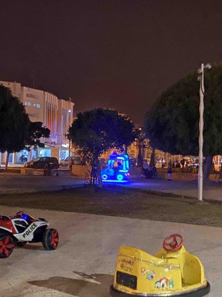 街までの途中、公園のような場所で子供が電飾されたカートで遊んでいた。