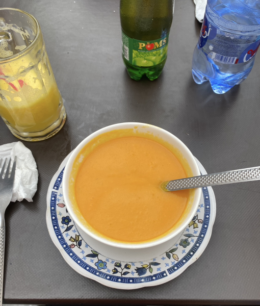 モロッコサラダ、オレンジジュース、タイのグリル、スープを注文した。