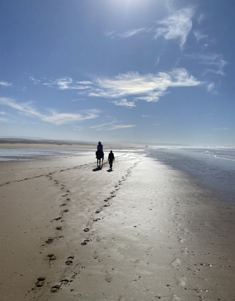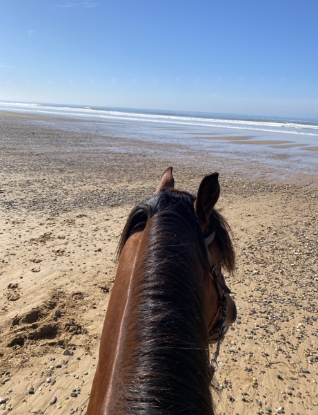 馬に乗りながら波を見ていたら、気分も上がり僕もサーフィンの気分になるかもしれない。そう考えた。