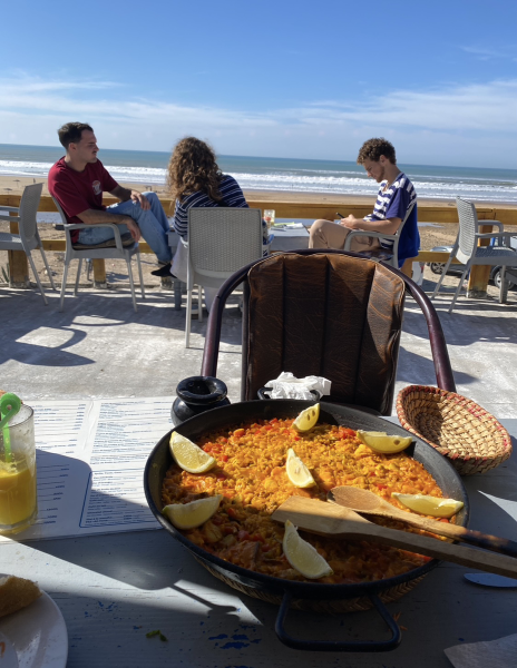 パエリアを食べながらのんびりと海を見る。