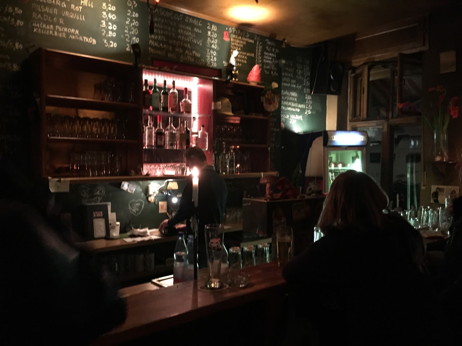 「クロイツベルグ(Kreuzberg)にある、小汚いパンクBARにいるよ」とのこと。ここは東ドイツの雰囲気が色濃くのこってます。賃料もベルリンの中ではまだ安い方で若者に人気のエリアで個人的に大好きな街です。