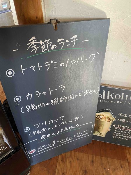 本日の季節のランチはハンバーグ、カチャトーラ、フリカッセとのこと。