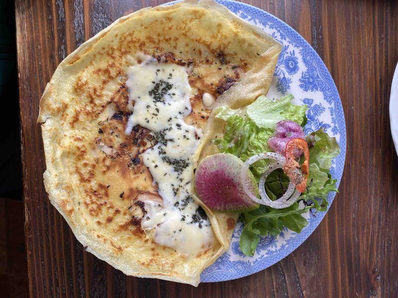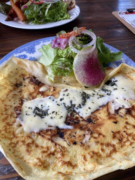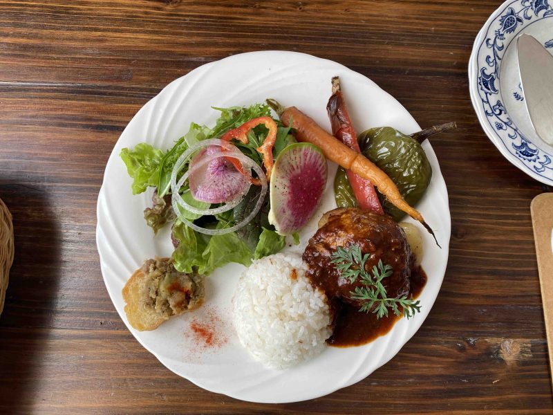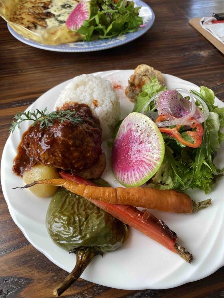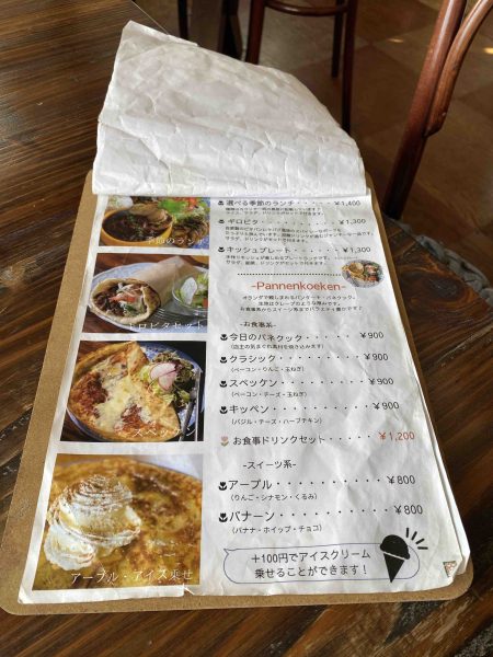 悩んだ挙句、季節のランチプレート(ハンバーグ)とキッペンのパンケーキ(バジル・チーズ・ハーブチキン)を注文。スイーツは後から考えます笑