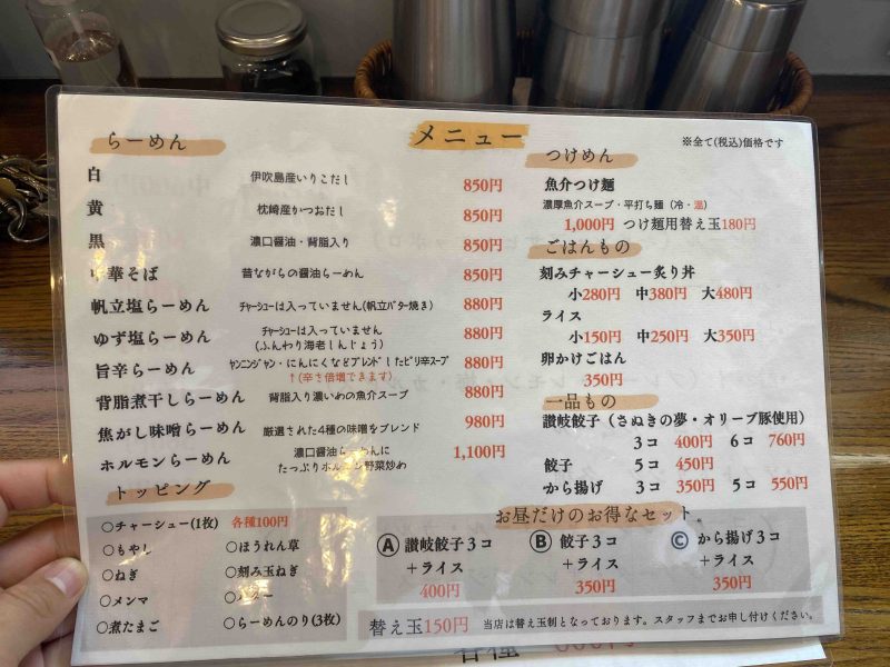 注文は「黒ラーメン850円」に「讃岐餃子6個750円」