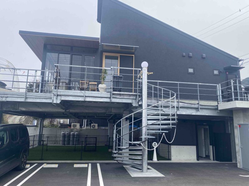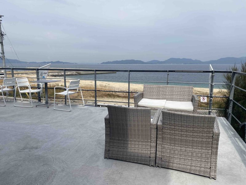 鎌野ビーチのちょうど向かいに2階建てのオシャレな建物が建っています。