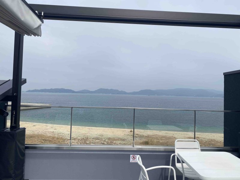 基本的にどの席からも海が一望できますが、広い席を案内してくれました。