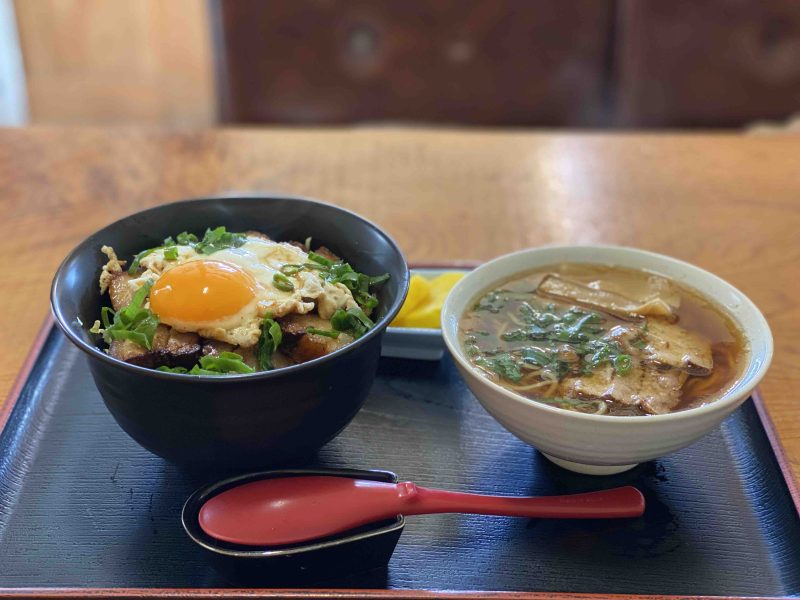 こちらが「あぶり焼き豚丼+ミニラーメンセット」1030円