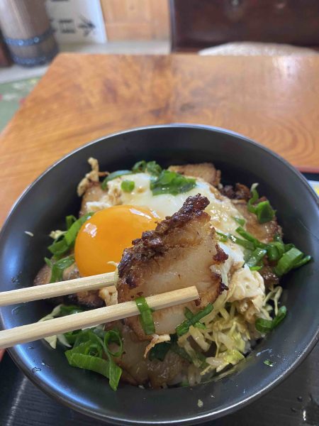 焼き豚は甘辛醤油ダレが効いていてサーフィン後にはピッタリのボリューム飯!!