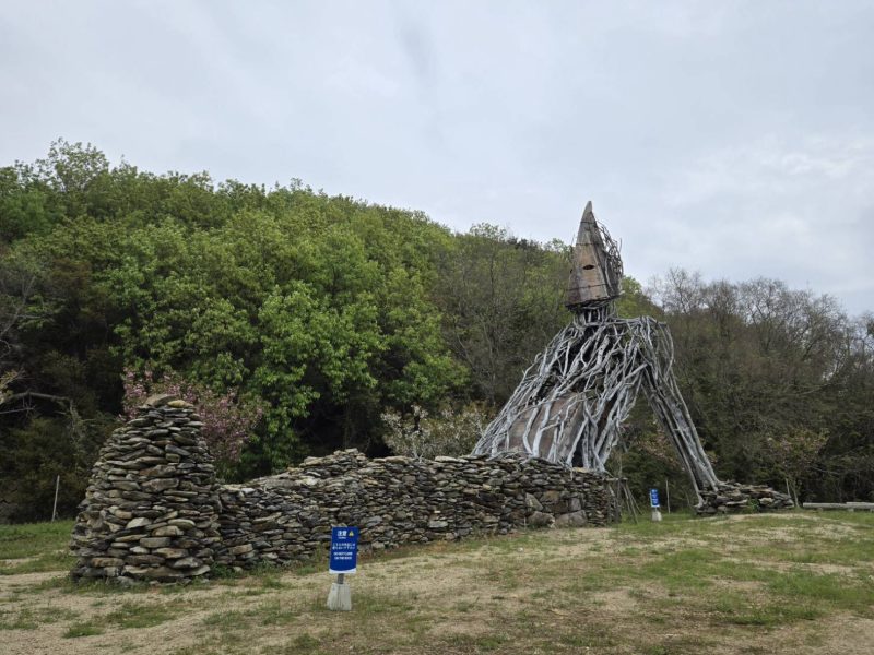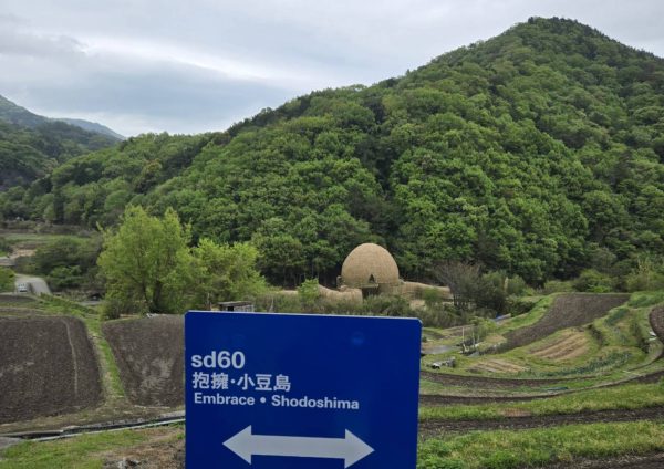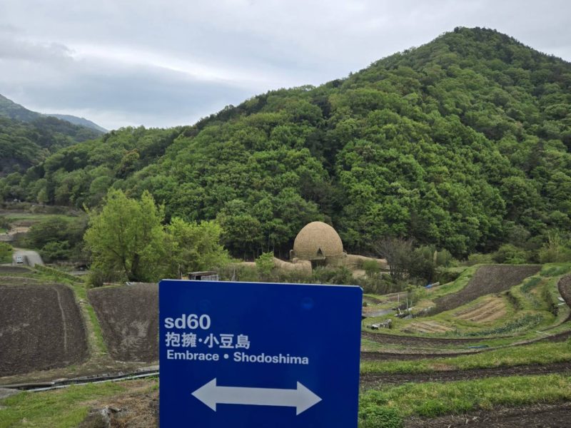 參觀完三都半島後,我們便搭車再次返回池田港,並在那轉車前進中山。 從「春日神社前」站一下車,遠遠便看見藝術家王文志的作品,順著田間小路而下,便可親身感受「抱擁•小豆島」的療癒與震撼。