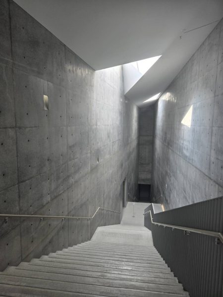 進入建築內部,即被節奏感光線引導。館內最吸睛的設計之一是從天窗灑下的中央樓梯光井,垂直貫穿三層建築,光線的自然投射、隨時間流動,使得建築本身便有如一件光影藝術品。