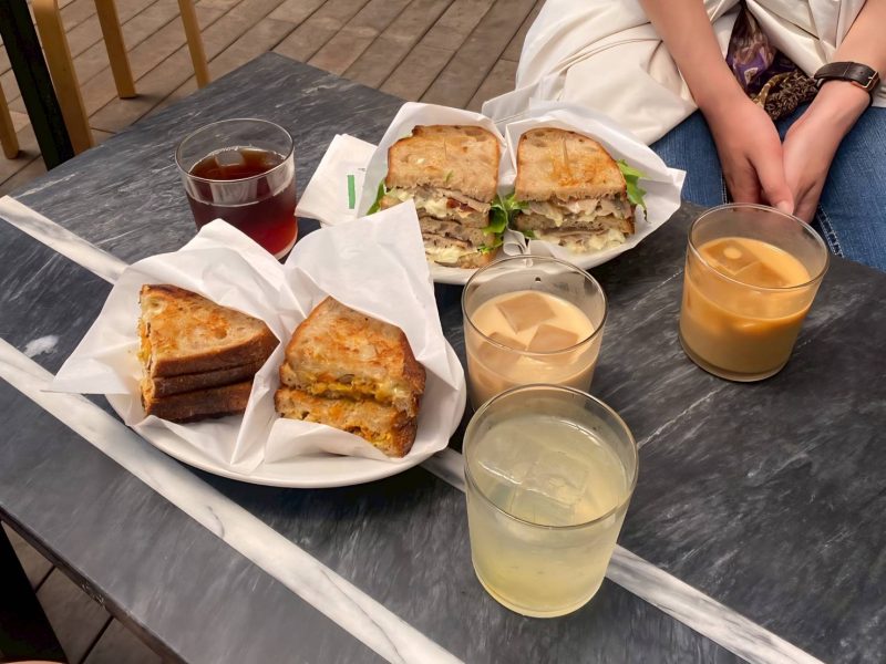 目前內用的鹹食主要為三種三明治,當天我們點了其中兩種,分別是雞蛋三明治和豬肉三明治,雞蛋三明治口味清爽,豬肉三明治有加鷹嘴豆泥且熱壓過十分有飽足感,都很推薦。