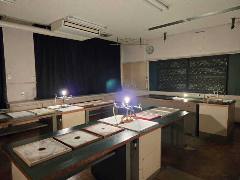 另外兩個在旧瀬居中学校的作品也令我印象深刻,分別為伊藤誠的「空気穴」以及福田惠的「永遠の庭、他」,兩者皆一定程度運用了中學教室裡的空間特色,譬如圖書室與理科教室等,將展出作品與保留原貌的教室環境,迸發出1+1>2的化學效應。