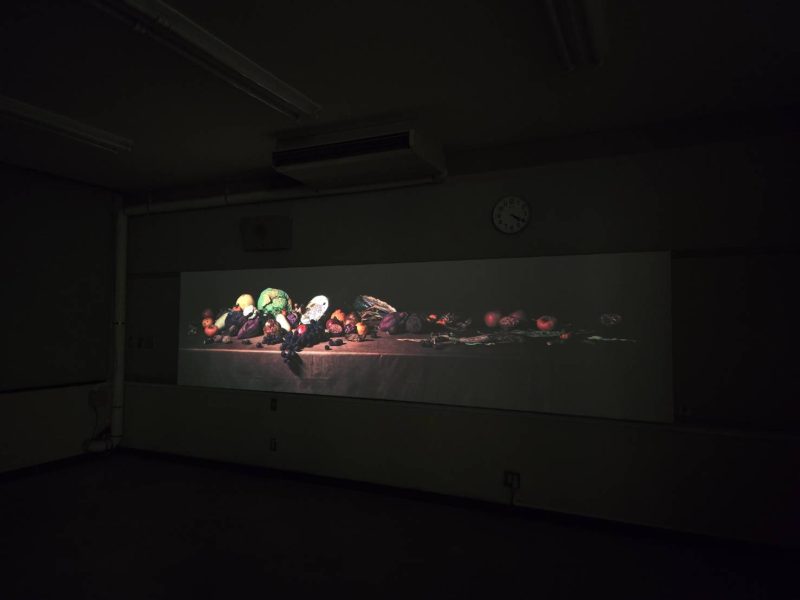 最後一站小學校共三層樓,一層由一位藝術家負責,三組風格迥異,都十分推薦!我自己私心最喜歡二樓藝術家小瀬村真美的主題「自然の/と陳列」,擺拍蔬果花卉的攝影,宛如靜物油畫一般唯美夢幻,卻同時呈現了其凋零腐敗過程的現實,在特別設計過的、光線昏暗的教室裡欣賞,別有一番風味。