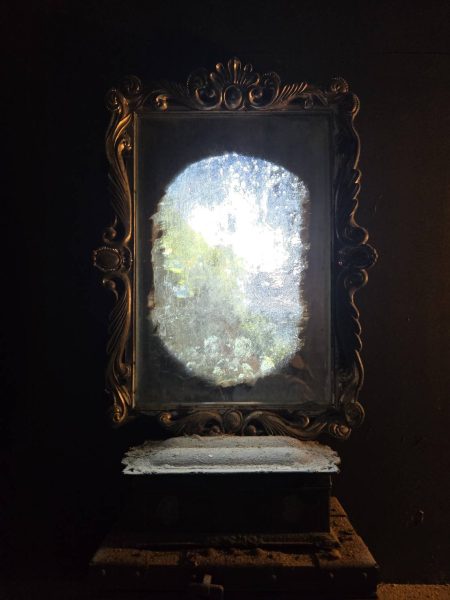 創作靈感來自於與瀬戶內海的出現,原先相連的陸地變成了海洋與島嶼,且隨著時間推移,有些島嶼又變回了陸地,一切一切都有種輪迴的宿命與美感,配合上沙彌島本身原是島嶼後被填海造陸的歷史背景,簡直找不到比這更適合展出該作品的地方。