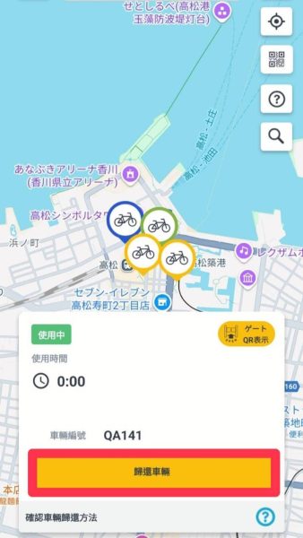 還車的時候則點選底下的“歸還車輛”,再次掃描腳踏車前方的qr code,就可以完成歸還了!