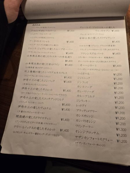 裡頭有一頁,放滿了一些名作家與導演的私人酒單,店家非常講究,不僅在送上調酒時會介紹它的製作方式與喝法,還會直接拿出有收錄該喝法的作品背書!超級用心完全是書迷會做的事>< 當天我點了伊丹十三導演喜歡的Gin Buck,Bartender拿出了導演1965年所發表的 散文集《ヨーロッパ退屈日記》,讓人感受到文學走進現實的浪漫。