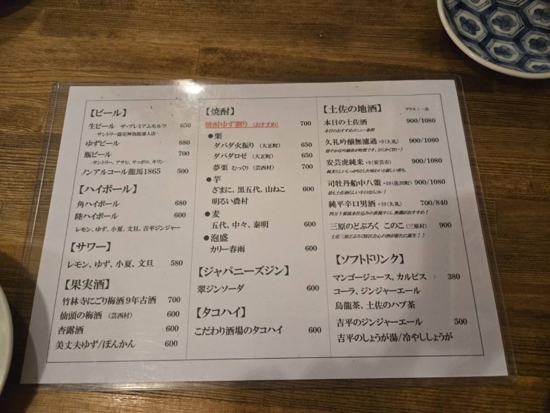 另一個絕對不能錯過的便是高知的在地酒!店裡不僅強調地酒,像是酔鯨、久礼、文佳人、等高知名品。facebook上也經常打卡分享當日酒單推坑,讓人忍不住想衝到現場品嚐。若是選擇障礙的話,也可以直接點店裡的「本日の土佐酒」,讓店家幫你直接挑選最適合的當日酒單。